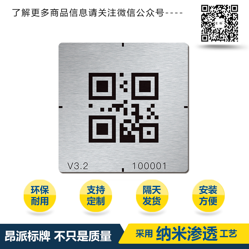 機器二維碼 時間:2018-09-07 14:41:30 分類:金屬二維碼 瀏覽:次 金屬二維碼采取高科技印刷工藝以及質量優勢: 金屬二維碼---進口納米鋁板---高科技德國滲透印刷技術---耐摩擦,耐溶劑,耐高溫,抗摩擦,耐紫外線,耐化學品性,耐腐蝕性,滲透印刷技術做出來的金屬二維碼使用壽命長,不易掉色,金屬二維碼識別率快,掃描率高,并光潔如新。 分享收藏: 上一個: 固定資產二維碼 下一個: 汽車二維碼 相關產品 托盤二維碼標牌 金屬貨架二維碼 汽車二維碼 設施二維碼 石油二維碼 固定資產二維碼
