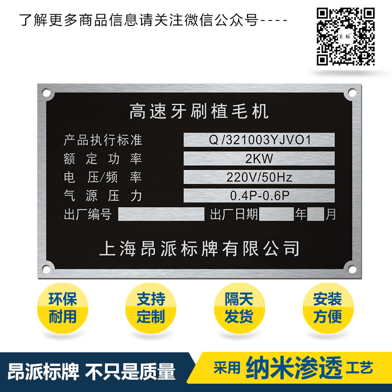 機(jī)器銘牌 時(shí)間:2018-05-18 19:05:56 分類:金屬銘牌 瀏覽:次 標(biāo)牌、銘牌、鋁牌的品質(zhì): 進(jìn)口材質(zhì)鋁標(biāo)牌可以耐高低溫、耐酸堿、使用壽命長(zhǎng)。金屬條碼耐腐蝕、耐汽油、耐溶劑型、耐高低溫、抗風(fēng)、雨、雪侵蝕和日曬,壽命長(zhǎng)。在戶外或室內(nèi)(廚房/化工廠等場(chǎng)合)惡劣環(huán)境下能使用,壽命長(zhǎng)等諸多優(yōu)勢(shì),贏得了來(lái)自世界各地客戶的認(rèn)可。 分享收藏: 上一個(gè): 固定資產(chǎn)銘牌 下一個(gè): 橢圓形標(biāo)牌 相關(guān)產(chǎn)品