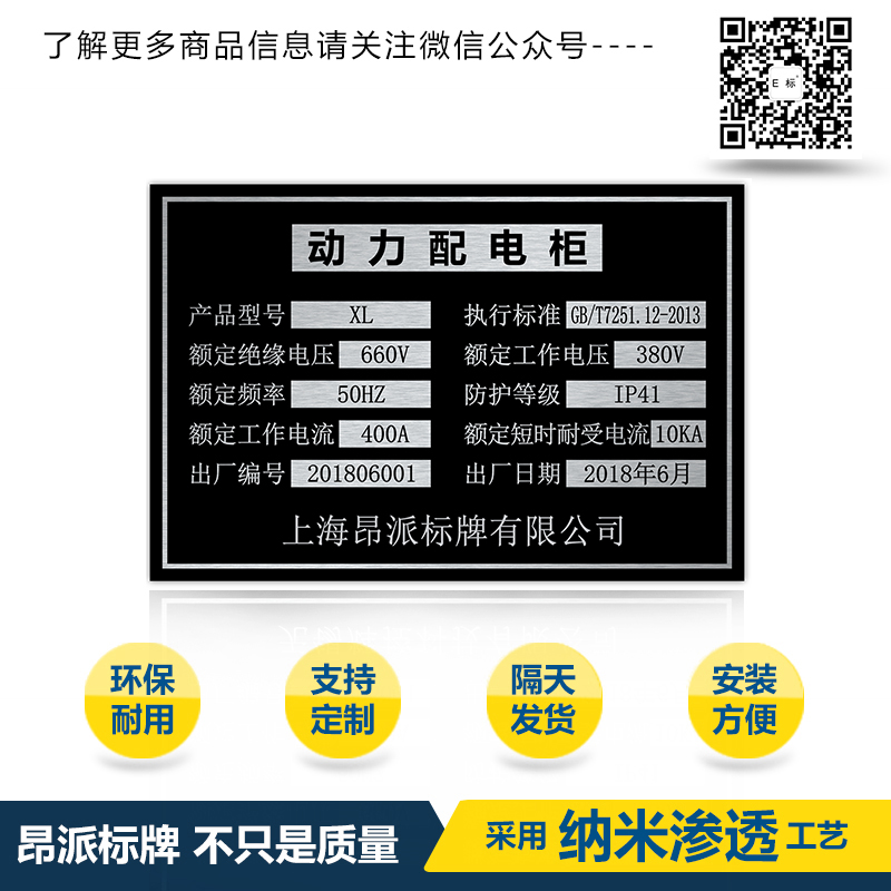 電柜銘牌 時間:2018-09-07 15:36:39 分類:金屬銘牌 瀏覽:次 標(biāo)牌、銘牌、鋁牌的品質(zhì): 本產(chǎn)品具有耐酸堿、耐熱震、耐高溫、抗沖擊、還具有很強的耐曬、耐磨擦、耐高溫、耐腐蝕、耐有機溶劑等特性,抗紫外線、抗粉化、不受臭氧、空氣污染、在室外陽光照射不易褪色,廣泛應(yīng)用于化工、電力和電信等腐蝕性強或須把標(biāo)志牌懸掛于室外的企業(yè),歡迎新老客戶拿圖拿樣來定做.不分量大小都可以定做價格合理.質(zhì)量保證交貨準時。 分享收藏: 上一個: 設(shè)備銘牌 下一個: 銘牌 相關(guān)產(chǎn)品
