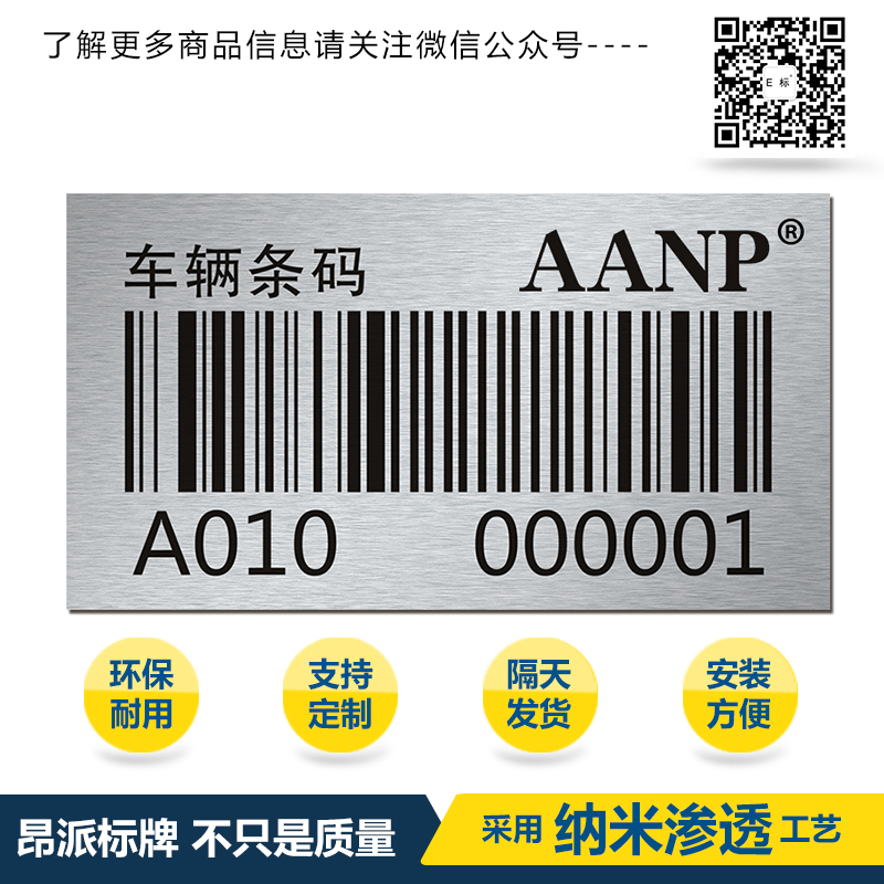 車輛條碼牌 時間:2018-05-21 16:30:07 分類:金屬條碼 瀏覽:次 關于金屬條碼獨特點-以及-質量優勢: 倉儲金屬條形碼、物流金屬條形碼、鐵路運輸金屬條形碼、樹木管理金屬條形碼、耐高溫金屬條形碼、資產管理金屬條形碼、防偽金屬條碼標牌、軍隊裝備金屬條形碼,金屬條形碼用途以及特色,耐候性低、抗惡劣天氣,不受臭氧、空氣污染、酸雨侵襲;耐紫外線、抗紫外線、抗粉化;耐化學品性、抗酸堿侵蝕;耐腐蝕性,氧化潮氣鹽份滲透率低;防霉菌污損耐濕性優,并能保持光潔,易于保養清洗,不易變色、褪色、爆裂、粉化等! 分享收藏: 上一個: 集團條形碼 下一個: 科技公司條碼牌 相關產品 感應器鋁合金條形碼 工程系統管理使用金屬條形碼 物流管理鋁制條形碼 倉庫管理鋁制條形碼 流水號鋁制條形碼 序列號鋁制條形碼